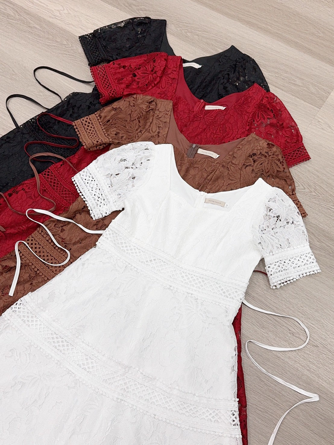 Kaverla Dress hadir dengan sentuhan elegan dari brocade lace yang memancarkan keanggunan klasik. Dress ini tersedia dalam dua ukuran untuk menyesuaikan bentuk tubuh, dilengkapi tali samping untuk menyesuaikan siluet serta resleting belakang untuk kenyamanan pemakaian.
