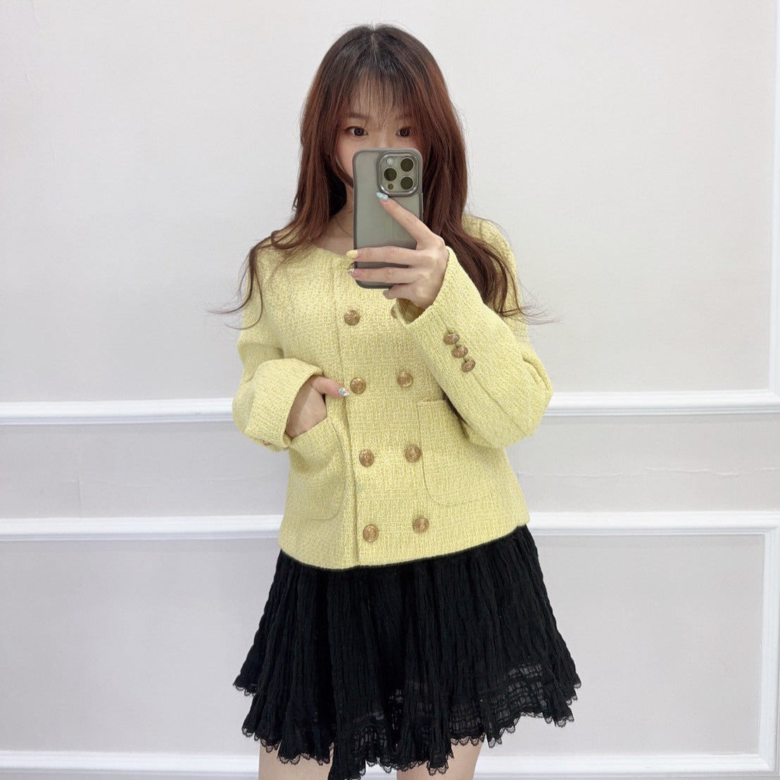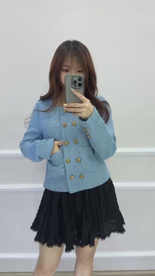 Features: Blazer bahan tweed dengan tekstur premium, kancing hidup yang fungsional, potongan chic dan elegan, cocok untuk gaya formal maupun smart casual.