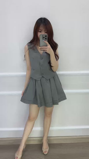 Features: Set 2 in 1 terdiri dari vest dan skirt, bahan cotton viscon yang adem dan jatuh, vest dengan kancing hidup, skirt dengan karet belakang dan resleting samping, desain chic untuk berbagai acara.