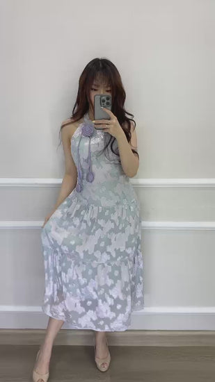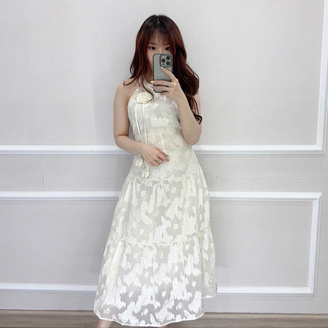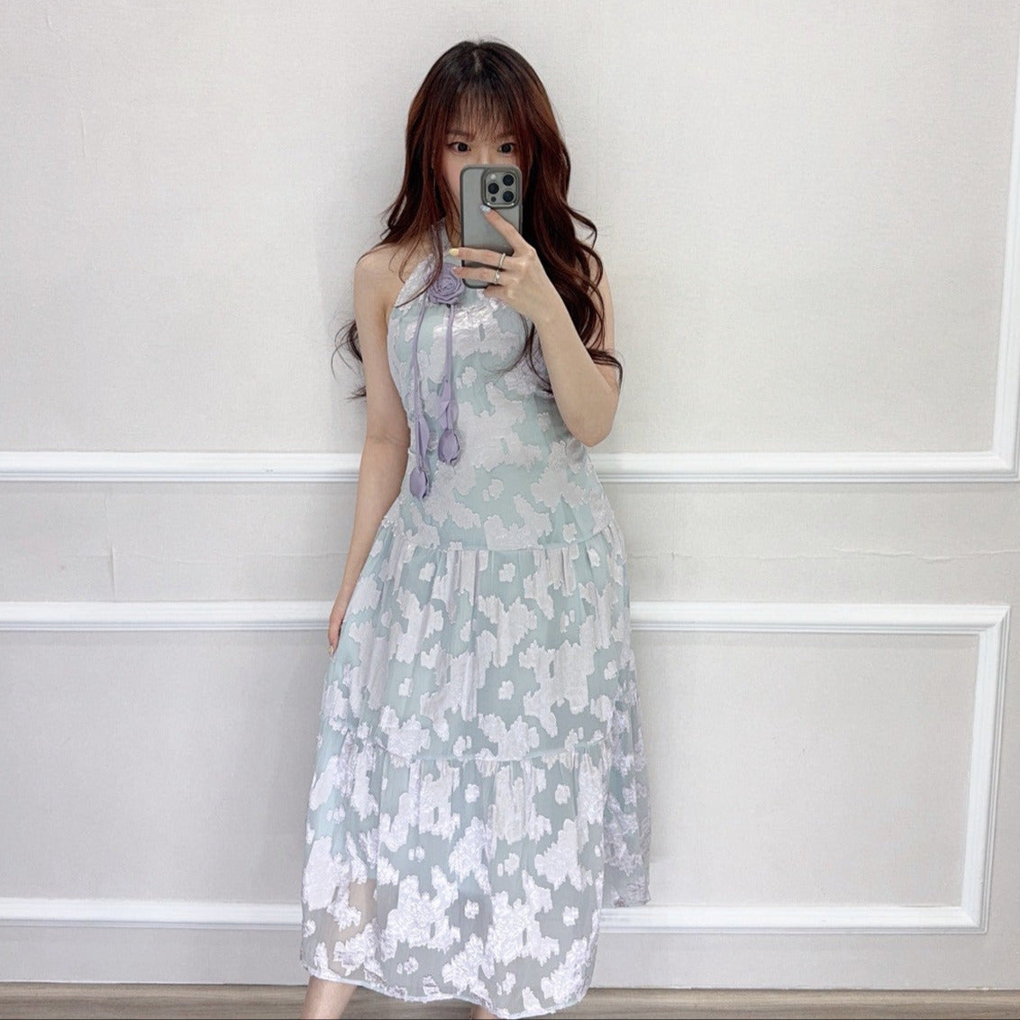Hashtag Relevant: #RoselyHalterDress #DressWanita #BrocadeChiffon #ElegantLook #OOTDStyle #FashionWanita