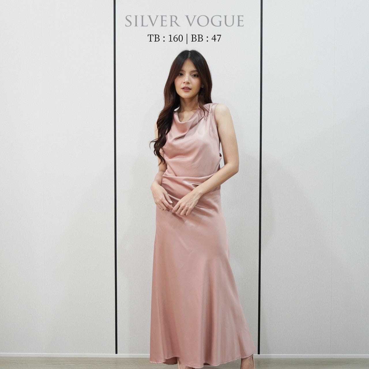 Features: Dress berbahan satin silk tebal dengan tampilan elegan, dilengkapi sleting samping untuk memudahkan pemakaian.