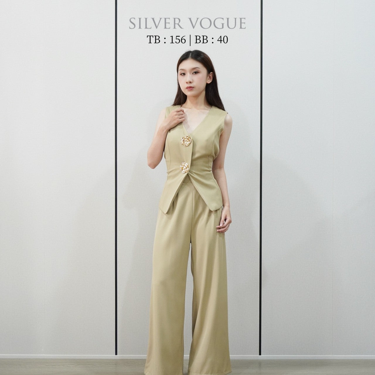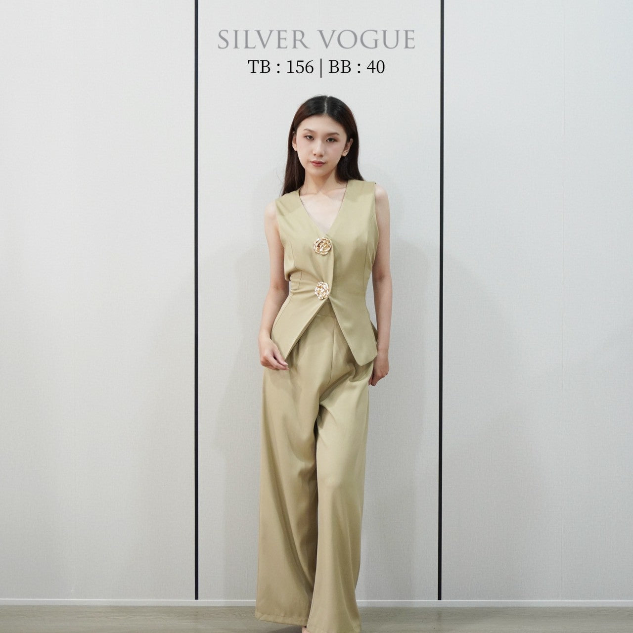 Set atasan dan celana berbahan cotton twill dengan tampilan klasik dan rapi. Atasan dilengkapi kancing hidup serta sleting samping untuk memudahkan pemakaian. Dilengkapi bonus brooch sebagai aksen elegan. Celana dengan karet belakang memberikan kenyamanan sekaligus fit yang lebih fleksibel.