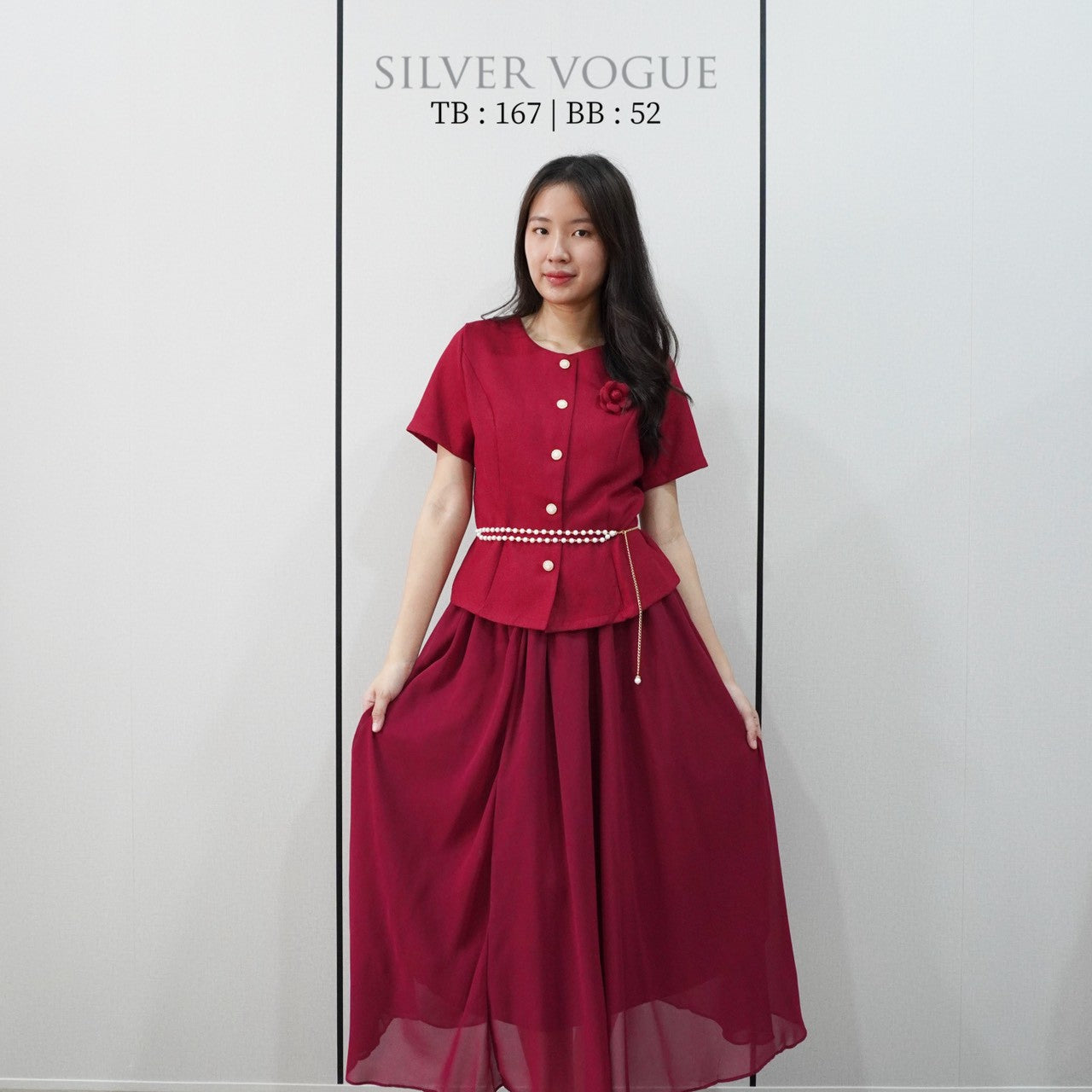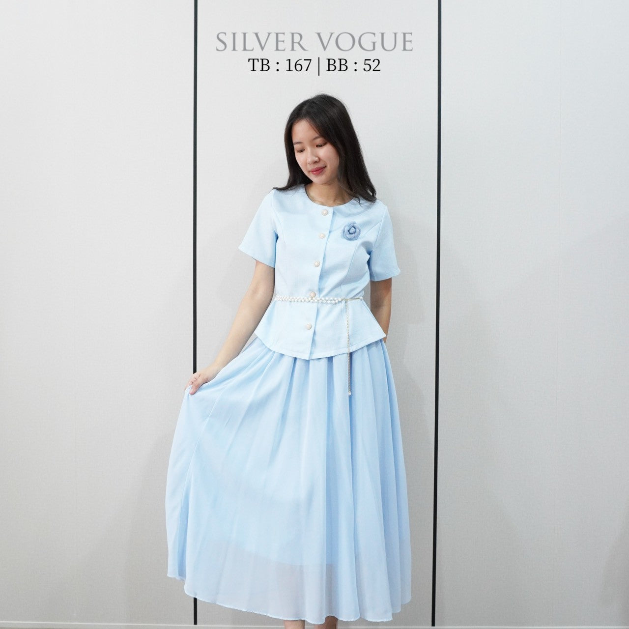 Set atasan dan rok, kancing hidup pada top, rok pinggang full karet, nyaman digunakan